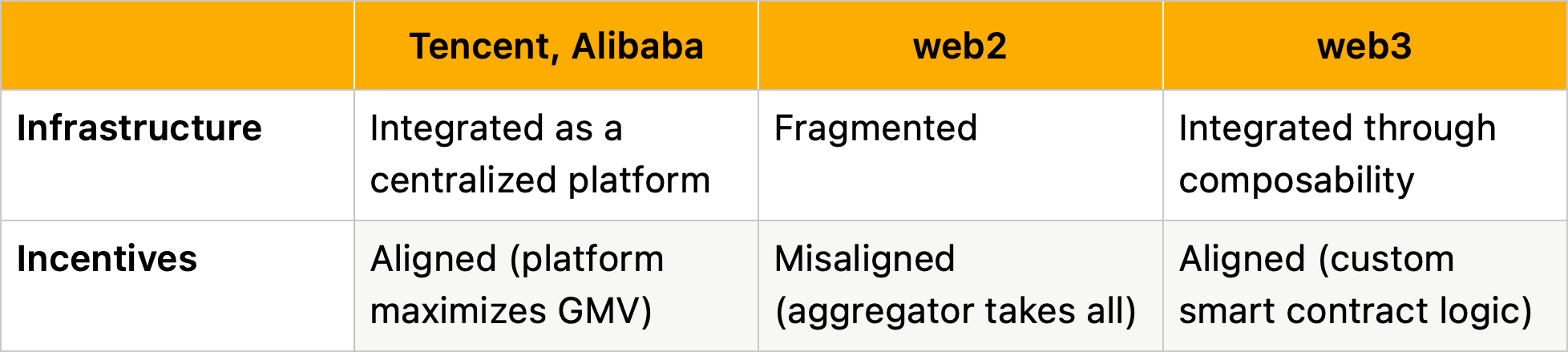 This centralization is both a result and a catalyst of the fact that Chinese tech giants offer much more to users than their American counterparts — social, e-commerce, payment and financial services, and even logistics. This significantly reduces the friction of anything involving multiple parties. In Li Jiaqi’s case, viewers can place orders right from his streaming room, with the platform handling inventory and data attribution, merchants dealing with customer support, and shipping partners fulfilling the orders, all in synchrony.
